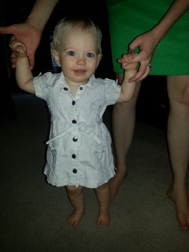 Hailey took her first steps this month. Only a few steps, but we’re counting them. She was walking back and forth between Mom and Dad. She seemed to enjoy this new found method of motion. Although, she hasn’t quite mastered the art yet.