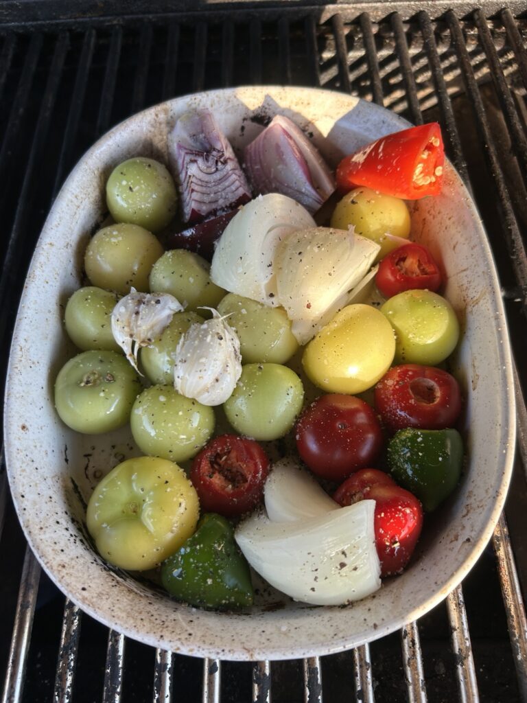 This recipe was a complete shoot from the hip. So, adjusted as needed based upon the size of your peppers and tomatillos.